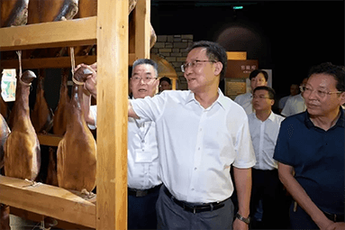 8月22日,金華市委書記朱重烈專程赴金字火腿公司調(diào)研金華火腿產(chǎn)業(yè)振興工作。朱書記在公司領(lǐng)導周國華、馬曉鐘、吳月肖陪同下,走進火腿文化展示館和產(chǎn)品展廳。